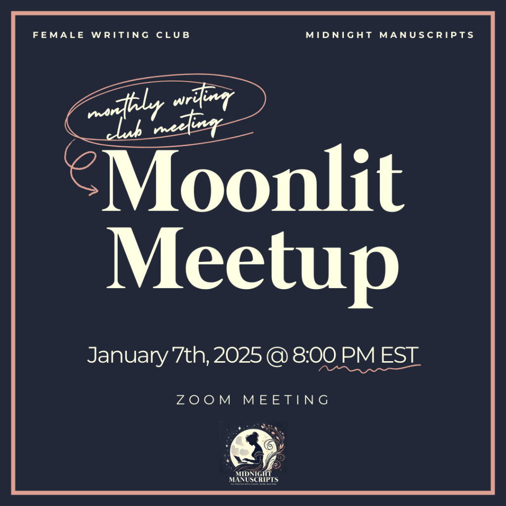 Bringing writers together has been a dream of mine, and I’m so thrilled to announce our very first Moonlit Meetup, aka our monthly zoom meeting, has been scheduled!🌙